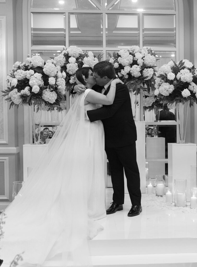 Ashley and Blake’s wedding at The Adolphus Hotel in Dallas was the epitome of elegance and sophistication. With a timeless black and white color palette and luxurious details woven throughout, their celebration was nothing short of breathtaking. From the moment guests arrived, they were immersed in a stunning atmosphere that perfectly blended modern romance with classic charm.