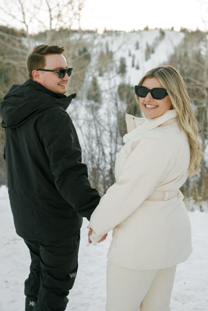 Some love stories are meant to be told against a backdrop of snow-dusted peaks, crisp alpine air, and the quiet luxury of a winter retreat. Brett and Austin’s engagement session unfolded exactly that way—post skiing, wrapped in layers of effortless style, and set high above Deer Valley at the iconic St. Regis Deer Valley.